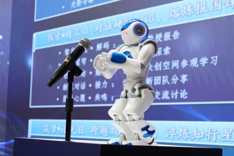 东北大学机器人科学与工程学院人机协作实验室的机器人“小智”作为本次科学营活动的科技志愿者,介绍了2025年辽宁省青少年科学营东北大学分营活动方案。