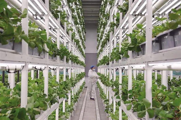 最让人惊叹的是这里占地面积7830平方米的数智草莓植物工厂。全密闭的玻璃房里,人工光模拟最适宜的阳光,高精度环控系统调控温度与湿度。在这里,草莓挣脱了季节束缚,在数智化科技的呵护下饱满生长。