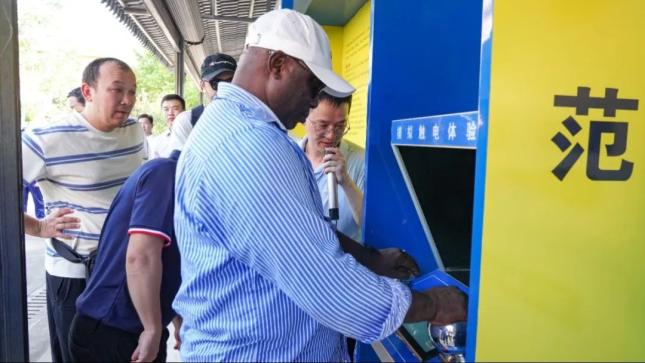 在中国铁建眉县应急演练培训基地,学员们对这座国家安全生产应急救援培训演练基地进行了全面参观体验。“Hold it!”在综合用电体验区,印度尼西亚学员双手握住仪器体验电流经过身体的感觉后,向同伴强调安全用电的重要性。“以后在任何施工场合,我都要强调戴好安全帽。”在安全帽撞击平台体验过撞击后,南非学员对不戴安全帽的危险感受印象深刻。