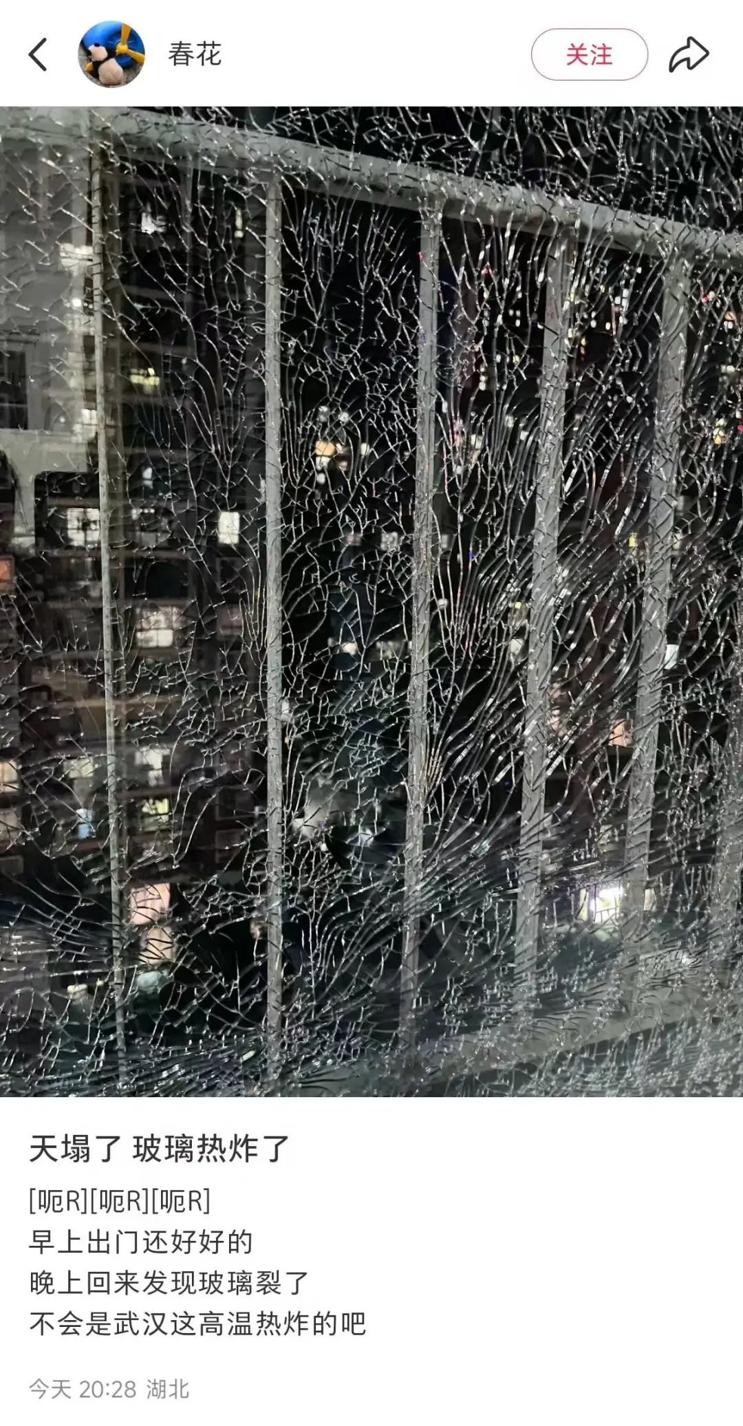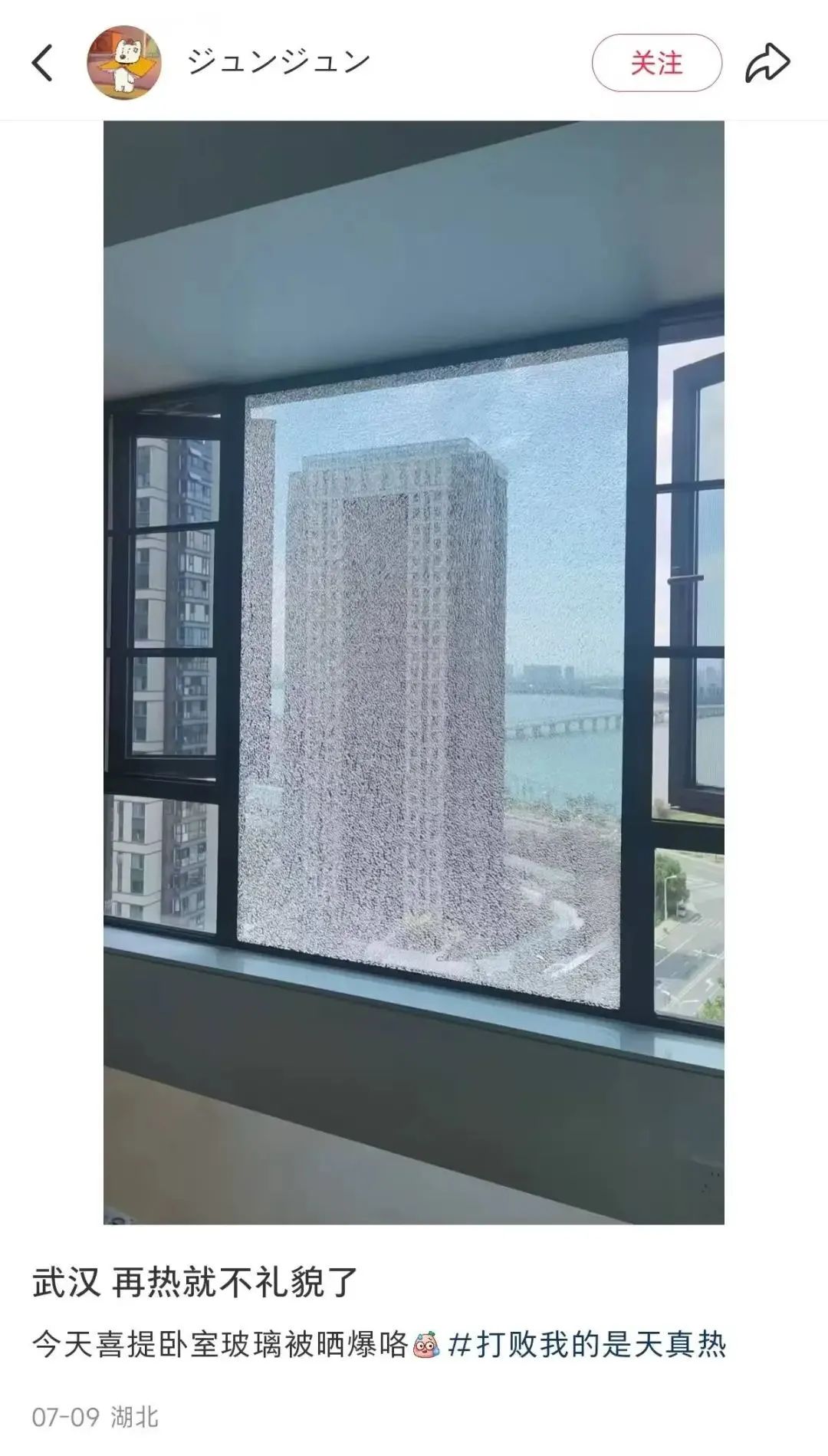 高层建筑玻璃爆裂,主要发生在夏天。高温之后下暴雨,或是室内开空调,室内外温差较大时,容易造成玻璃爆裂。