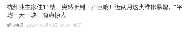 发帖人曹女士,杭州城北某小区业主,住在11楼。她告诉记者,7月4日下午2点左右,她正在家里,突然听到一声巨响。“当时我被吓到了,以为是楼下马路上谁家车子爆胎,过了一阵,才发现是我家客厅的飘窗玻璃自爆了。”