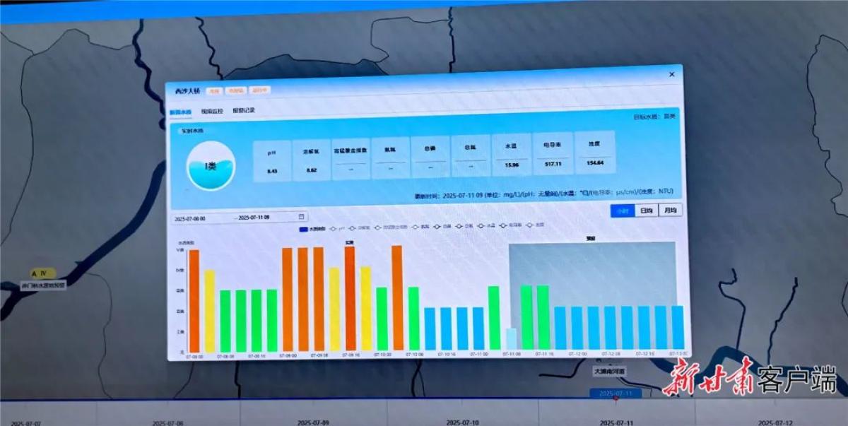 “你看,这是你们接下来要去的西沙大桥水质自动监测站实时上传过来的数据。”通过大屏幕,记者看到当前该段水质显示为Ⅰ类,各项监测数据一切正常。