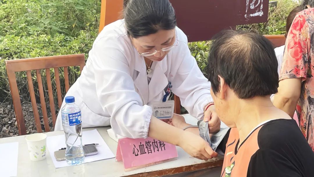 血压测量站:血压测量点,医护人员细致记录,心血管内科医生及时提醒注意事项。