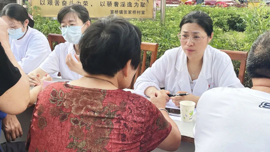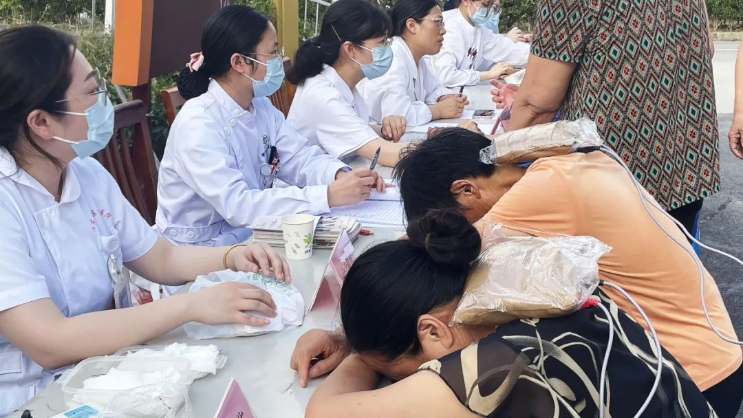 中医健康咨询台:村民们有序排队,专业中医师逐一把脉问诊,为村民们进行体质辨识,帮助村民了解自身特点,耐心解答村民关于常见病调理、饮食起居、三伏天养生的各种疑问,提供贴心实用的健康指导,解锁个性化的夏季养生锦囊。