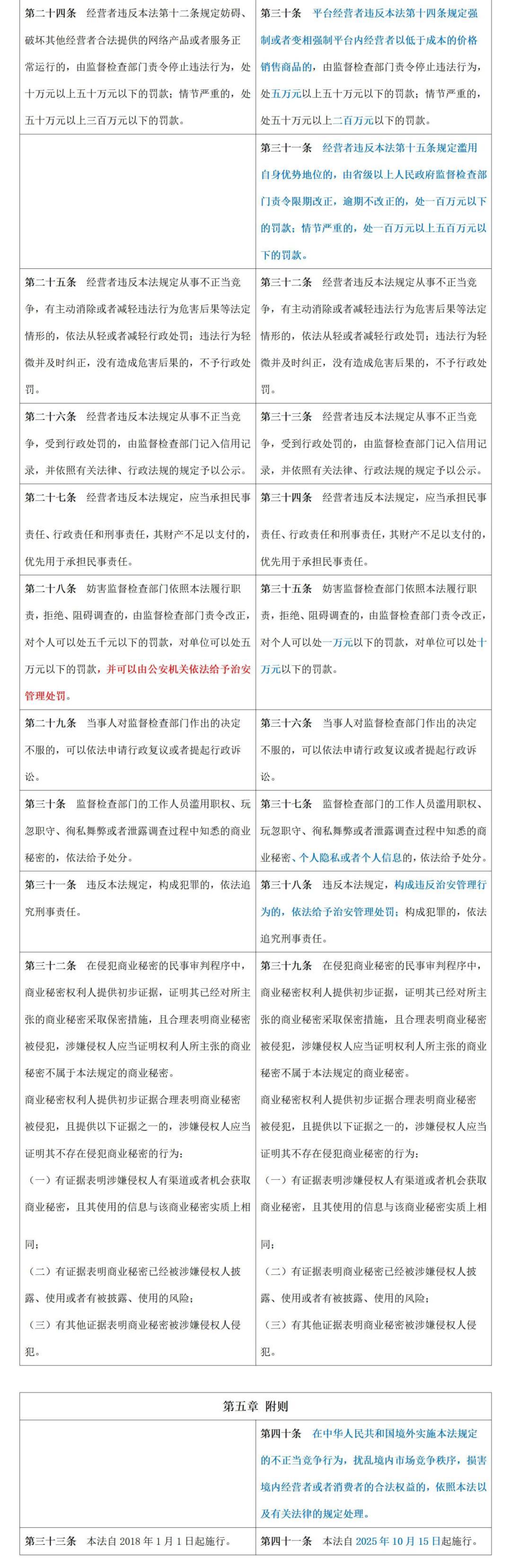 原标题:《【企业家学法】新修订的《中华人民共和国反不正当竞争法》自10月15日起施行(附修改和增加内容对比表)》