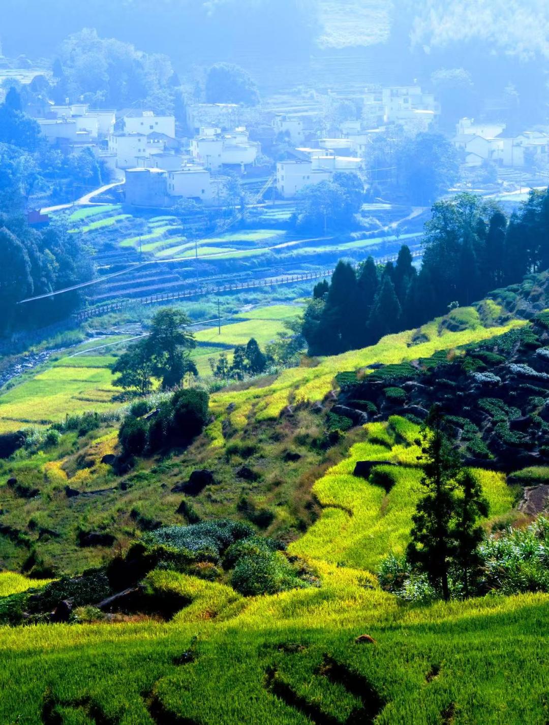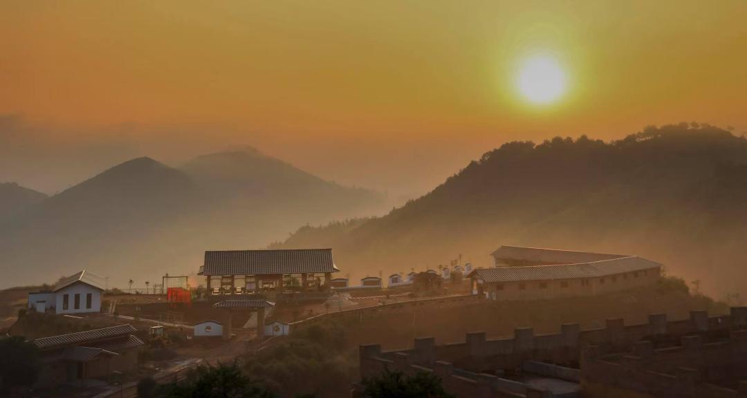 村舍错落暮光留。