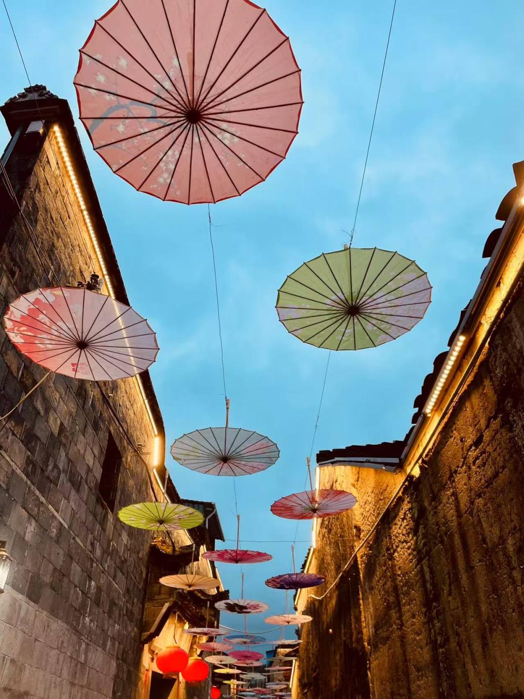 飞檐错落挂灯长。