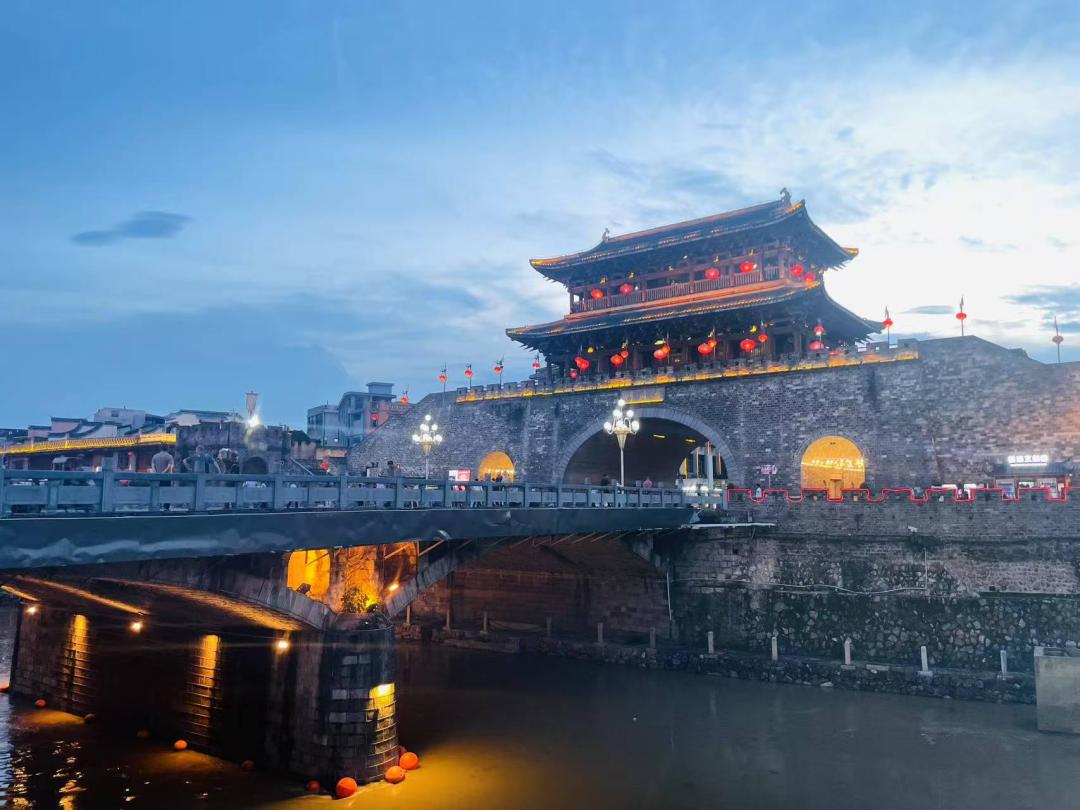 暮霭笼城映晚妆,