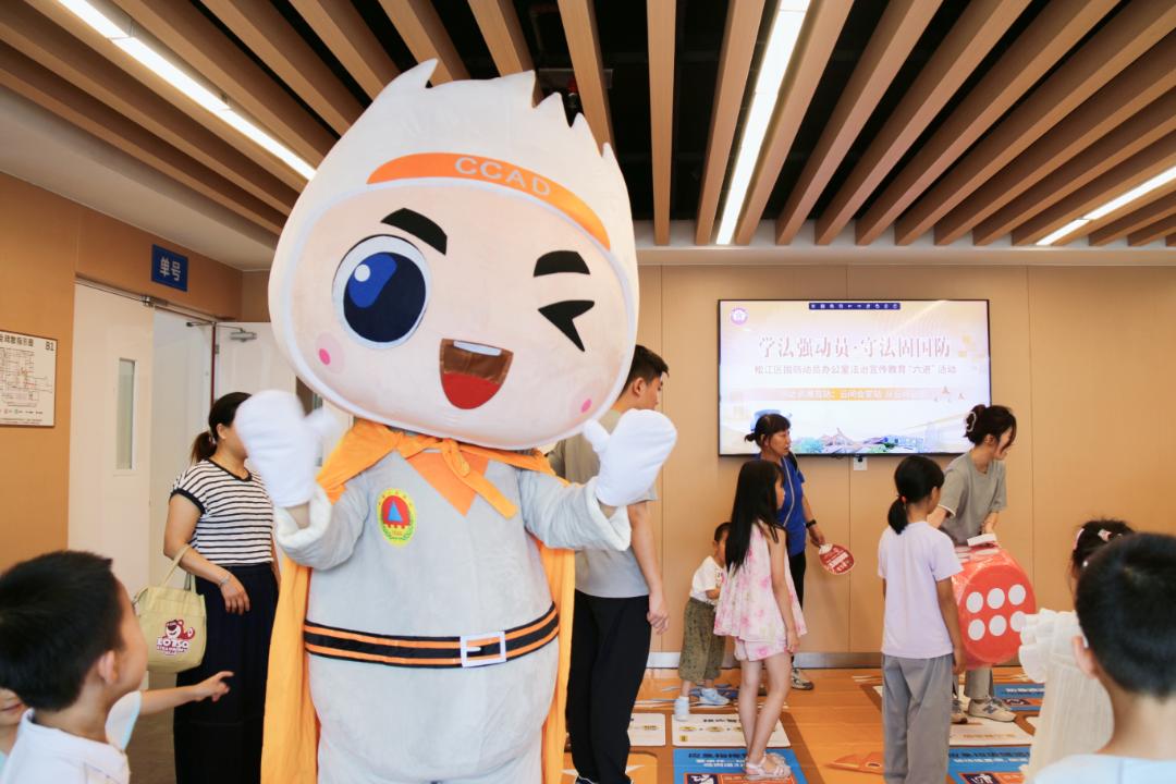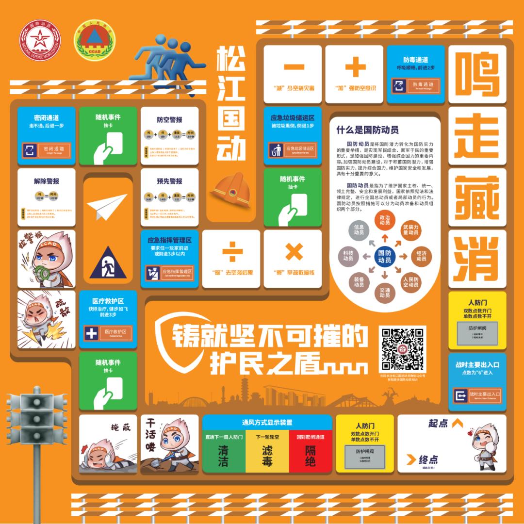 在橙、绿、蓝、红的四方棋盘上,孩子们掷骰子、走棋子,用国防动员知识一决高下……7月16日,由松江区国防动员办公室设计制作的人防互动逃生棋游戏巡展首站走进云间会堂小剧场大厅,吸引了近百名家长和小朋友热情参与,通过趣味十足的游戏体验,宣传国防动员法律法规,普及人民防空知识。