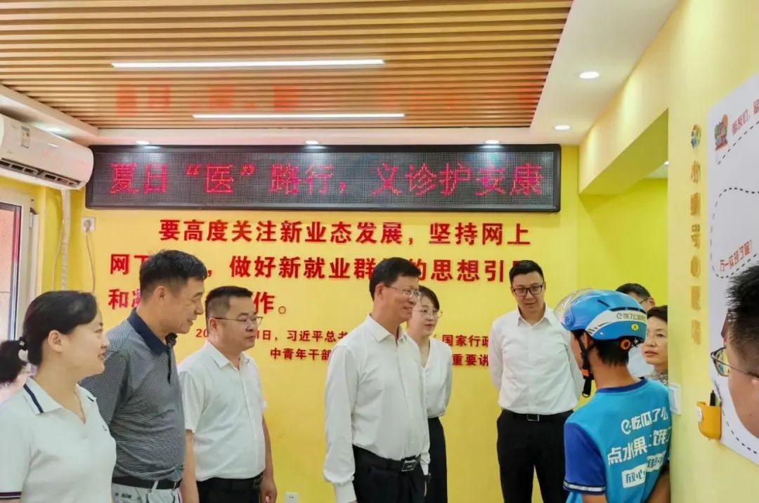 7月19日,雄安新区开展“夏日送清凉 驿站传真情”“夏日医路行 义诊护安康”新就业群体关爱行动,为快递小哥、外卖骑手、司机师傅等高温作业群体送去防暑物资和健康服务,传递党组织的关怀。省委雄安办副主任,雄安新区党工委委员、社会工作部部长、新兴领域党委书记王纪平参加活动。