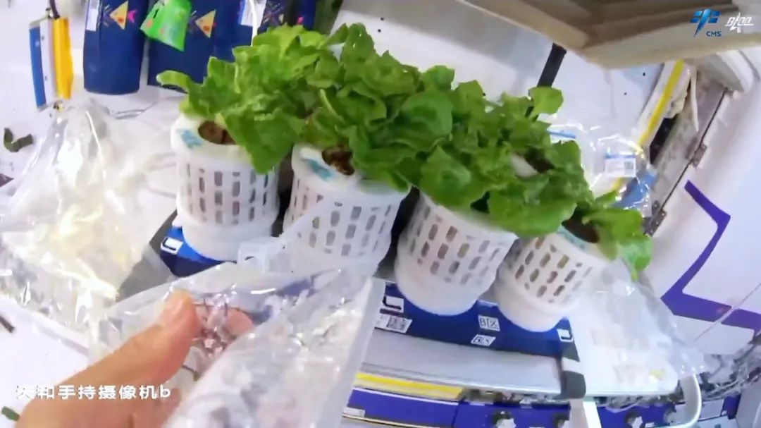 航天员在中国空间站内种植的生菜长势喜人