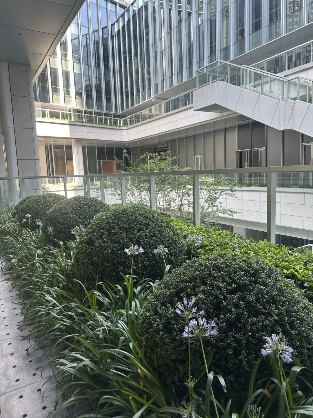 项目着重打造立体景观,包括一层景观、八个地下庭院、二三四层景观,突破传统绿化边界,打造“地下-地面-空中”垂直景观体系。植物多达50种,种类丰富,色彩变化明显。