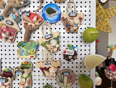 “我们主要经营海岛专属文创产品,有贝壳类、椰壳类、海胆灯等。进入暑假后销量可观,尤其是贝壳类冰箱贴,很受消费者欢迎。”阿明说。
