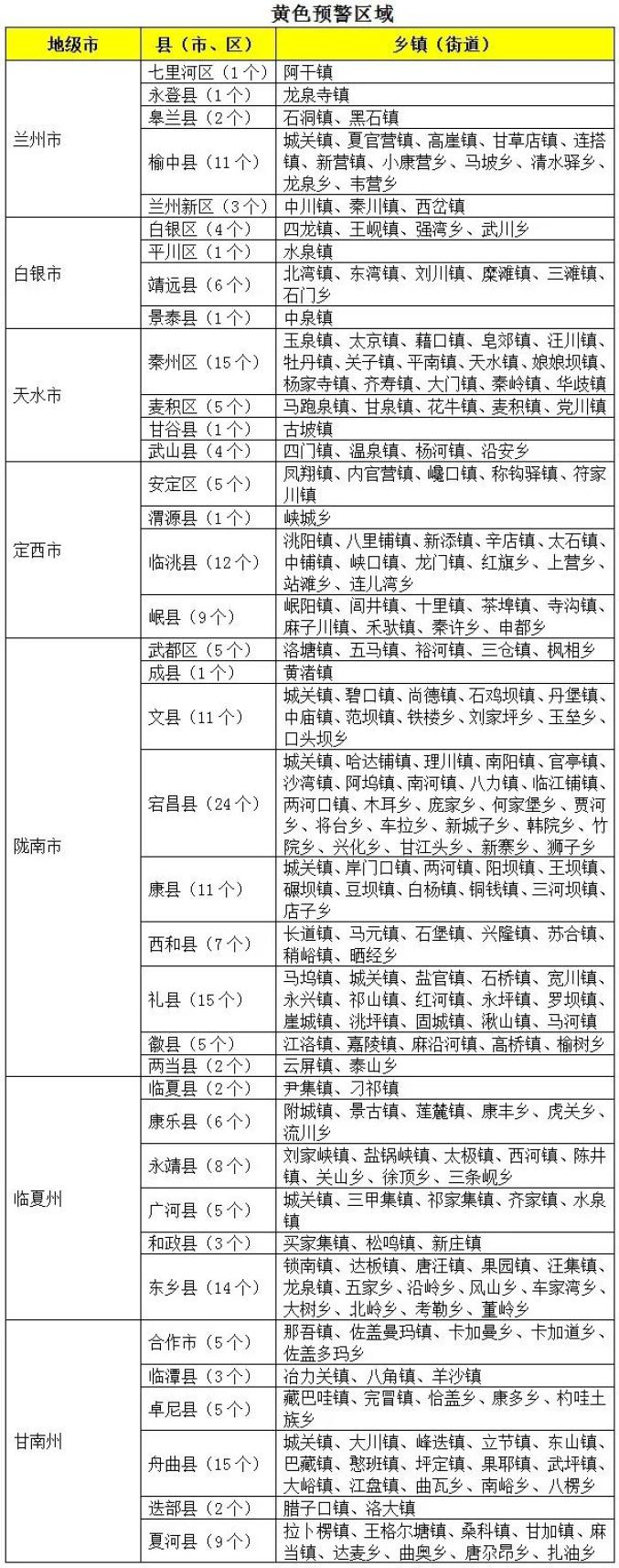 预计,08月07日20时~08月08日20时兰州市(永登县、皋兰县、七里河区、榆中县、兰州新区),白银市(白银区、平川区、靖远县、景泰县),定西市(安定区、临洮县、渭源县、岷县),临夏州(康乐县、永靖县、广河县、东乡县、临夏县、和政县),甘南州(合作市、临潭县、卓尼县、夏河县、舟曲县、迭部县),陇南市(武都区、宕昌县、礼县、康县、文县、徽县、两当县、成县、西和县),天水市(秦州区、麦积区、甘谷县、武山县)等地最大累计雨量40-70毫米,局地可达80-120毫米,小时雨强30-50毫米,最大可达60毫米,以上等地区发生山洪灾害可能性较大(黄色预警);其他地区也可能因局地短历时强降水引发山洪灾害,请相关部门注意做好实时监测、防汛预警和提请危险区人员转移避险等防范工作,社会公众注意防灾避险。
