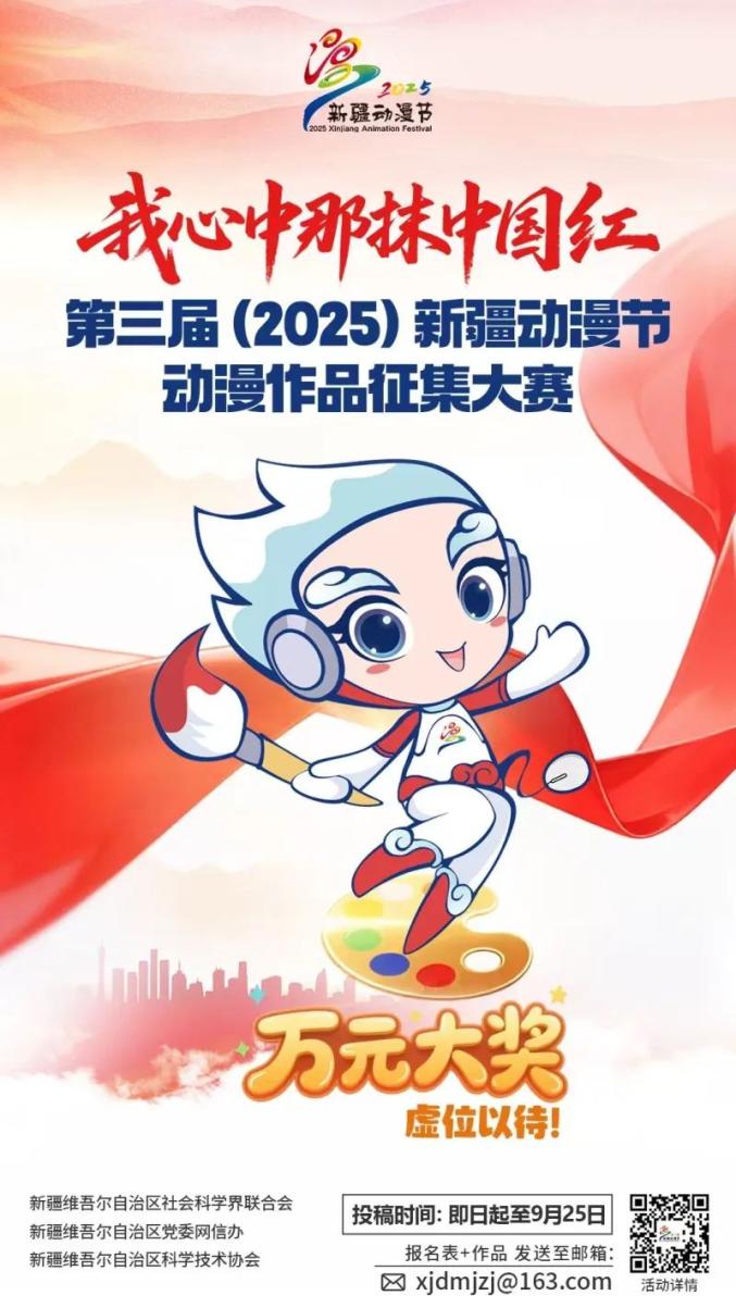 用画笔描绘美丽新疆,用创意点燃动漫梦想!由自治区社会科学界联合会、自治区党委网信办、自治区科学技术协会共同主办的第三届(2025)新疆动漫节动漫作品征集大赛正式启动啦!无论你是行业大触、高校师生、还是热爱动漫的青少年,只要你有想法、有创意,这里就是你闪耀的舞台!