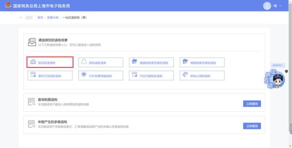 您可以在新电局门户点击【场景办税】中的“一站式退税”进入退税功能。