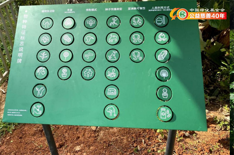 在西双版纳国家级自然保护区关坪管护站,防火瞭望塔上有一幅完整的、层次分明且覆盖6层墙体的巨幅雨林墙绘。这是“关坪管护站公众自然科普设计项目”的一部分,由中国绿化基金会为更好地开展亚洲象及其生态环境保护而设计。该项目还设计了科普展板和全新的物种标识牌,不仅全面呈现了西双版纳的自然生态特征以及保护区的工作成果,还从细微入手展现每个物种的特色和生存策略。通过这套独树一帜、充满巧思的呈现系统,公众可以更科学全面了解亚洲象的生存环境,更主动有为地加入亚洲象保护行动。
