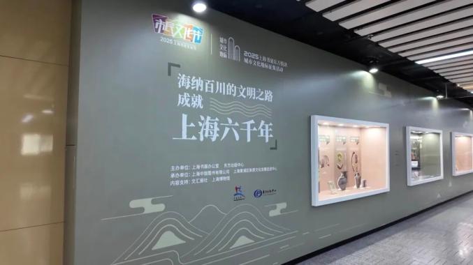 上海地铁一大会址·新天地站的文化长廊,因为《上海六千年》主题展变身“迷你博物馆”。六大展板浓缩上海文明史诗:从“最初的上海”展区崧泽文化的文物,到“千帆之港”展板青龙镇港口的复原,直至“长三角一体化”展板的历史渊源。长廊如时空隧道,将青浦的史前篝火、唐宋帆影、现代虹桥串联成一条完整的文明链——每一步前行,都在印证早已刻入城市骨血的“海纳百川”基因。