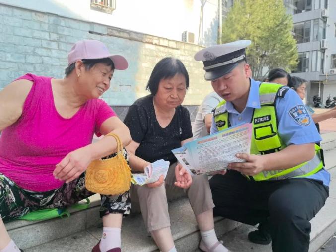 针对夏季秋初的交通环境,民警通过唠家常,讲案例,发放宣传单等方式,向社区居民讲解基本安全出行常识以及驾驶电动车不佩戴安全头盔、闯红灯、逆行等交通违法行为带来的危害。同时,提醒社区群众,注意孩子们的假期交通安全及老年人的出行安全,强调说明了酒醉驾、面包车超员、三轮车违法载人等违法行为的严重危害性,倡导广大群众自觉遵守交通法规,不断提高自我安全防护和文明交通安全意识,主动养成文明出行的良好习惯,真正做到知危险、会避险,安全文明出行。