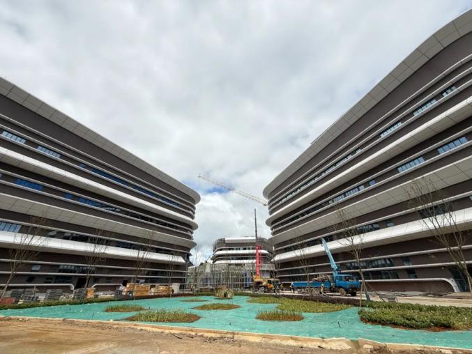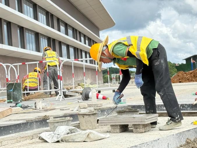 8月19日,在位于贵安新区数谷大道旁的东数西算贵安新区算力产业集群配套项目(EPC)总承包(二标)项目建设现场,记者看到,眼前的整体建筑轮廓已清晰可见,工人们正在进行室外铺装、植被绿化、模板架体搭建等重点施工作业。