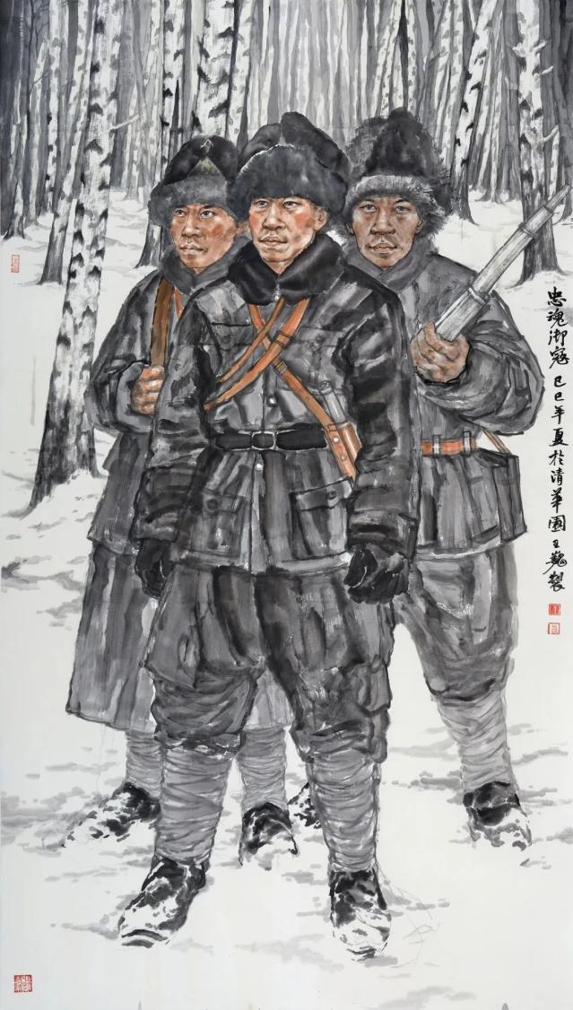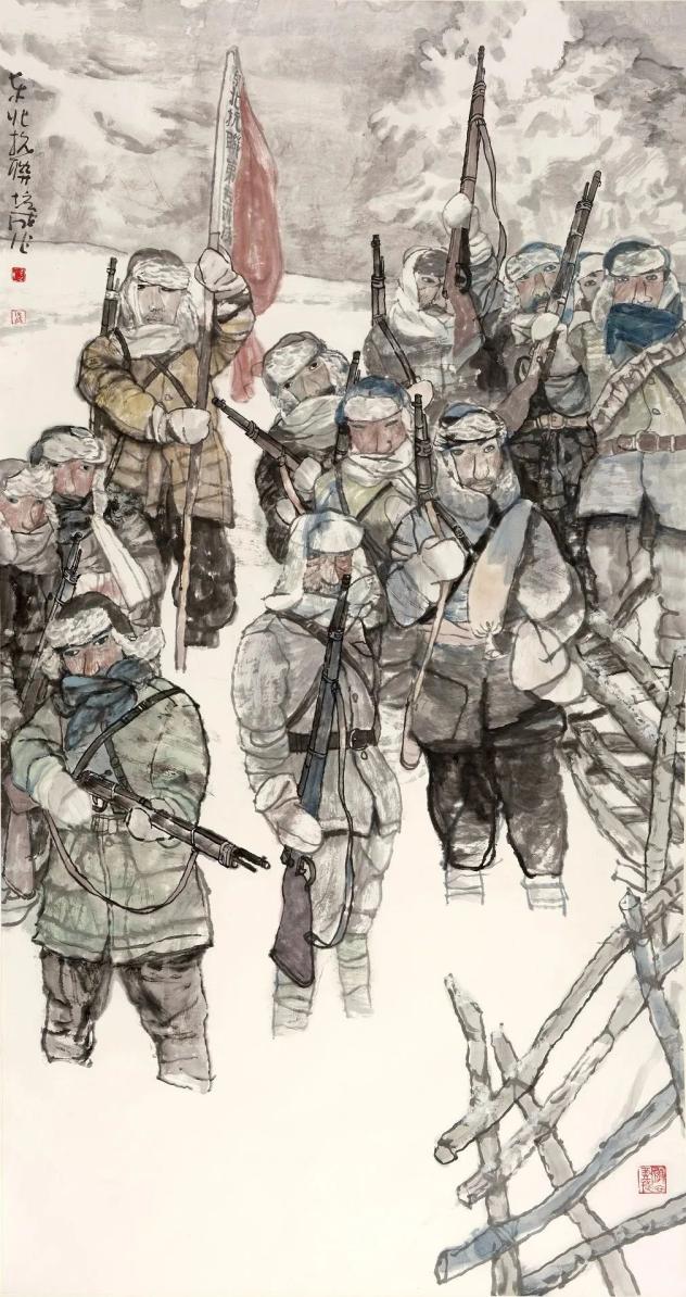 战斗在白山黑水的东北抗联,张培成绘,180cm X97cm