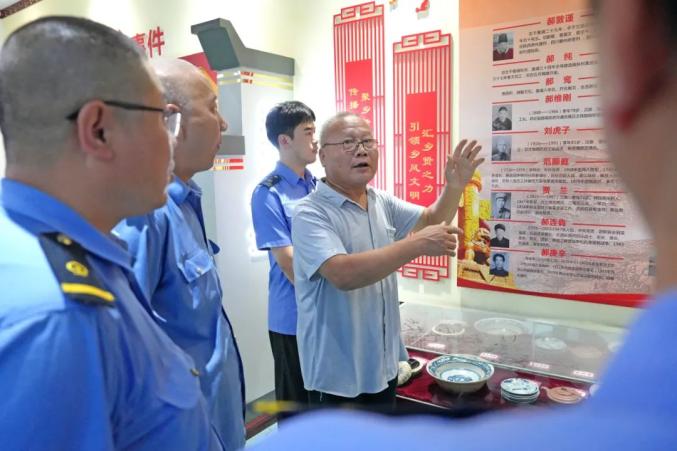 8月22日,正值百团大战85周年之际,南张村站站长杜昆鹏组织休班职工,前往红色文化底蕴深厚的南张村,踏寻革命抗战足迹。在铺满红色印记的村史馆内,已过七旬的南张村村史研究员杜建平,将年轻铁路职工们的思绪带回那个烽火连天的抗战岁月。