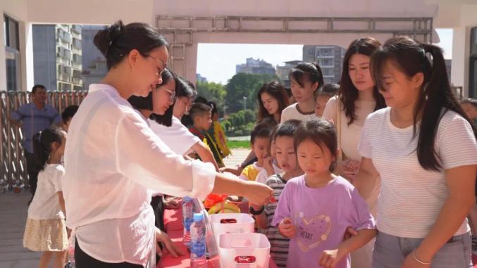 家长们牵着孩子的手有序入校,学校正门精心摆放着葱、苹果、桔子等物品,分别寓意聪明伶俐、平平安安、大吉大利,孩子们触摸后又参与点朱砂、击鼓仪式,在满满的仪式感中开启校园新生活。