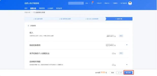 注意:①收入总额、财产原值、允许扣除的税费根据上一步骤中股权转让信息自动带出;②投资抵扣金额根据纳税人天使投资备案信息自动带出且不可修改。