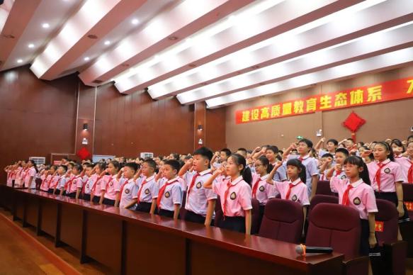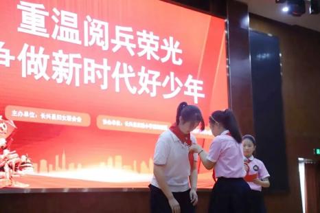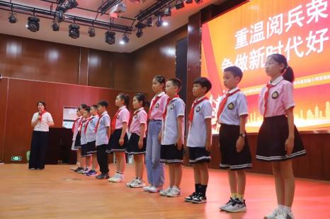 活动最后,全体同学起立,举起右拳,庄严宣誓:重温阅兵荣光,致敬榜样力量,走好“人生正步”,争做新时代的好少年!铮铮誓言在校园回荡,表达了同学们向巾帼榜样学习、争做新时代好少年的决心和信心。
