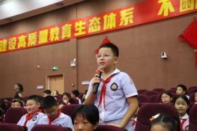 在互动问答环节,同学们争相举手提问。“三次阅兵中哪次最难忘?”“在走过天安门广场时,您的心情是怎样的?”……面对同学们天真又真诚的问题,梅月圆一一耐心解答。