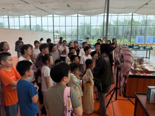 按照活动安排,参观人员走进天津正达蜂业有限公司,开启蜜蜂养殖的探秘之旅。天津正达蜂业有限公司(即古枣觅蜜蜜蜂文化产业园)坐落在素有“百年枣乡”美誉的天津市西青区张家窝镇,它依托古枣林实现并发展林下养蜂产业,是集蜜蜂养殖、蜜源植物种植、养蜂技术培训、蜂蜜生产销售等于一体,拥有完善的产品追溯、技术培训、项目研发、电子商务等现代农业管理体系,先后获得了津门老字号、天津市著名商标、天津市农业产业化重点龙头企业等殊荣。活动现场,专业技术人员向大家介绍了产业园的建设情况,蜜蜂的科普知识等。她在介绍中讲:蜜蜂是一种社会性昆虫,属于膜翅目蜜蜂科,他们以采集花粉和花蜜为生,不仅为植物传播授粉,还为我们提供了宝贵的蜂蜜产品。蜜蜂的社会结构复杂且有序,在一个“大家庭中”,通常由工蜂、雄蜂和蜂王组成,它们分工不同、但合作有序。结合养蜂用具、蜜蜂肢体模型等,还向大家介绍了传统的割蜜、摇蜜、接蜜的过程,讲解了蜜蜂的身体结构。在动手实践环节,她带领大家用蜂蜡等材料进行了蜂蜡唇膏DIY制作,让亲子家庭亲身体验将天然蜂蜡转化为实用护肤品的乐趣。此外,现场设立的流动科技馆(数学几何主题)体验区,通过互动模型和趣味游戏,以寓教于乐的方式向不同年龄段的公众展示了基础科学的魅力,激发了探索思维。