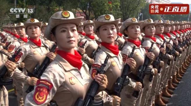 纪念中国人民抗日战争暨世界反法西斯战争胜利80周年大会上,作为民兵方阵的一员,无锡太湖学院健康医学院大四学生王昕妍正在现场。