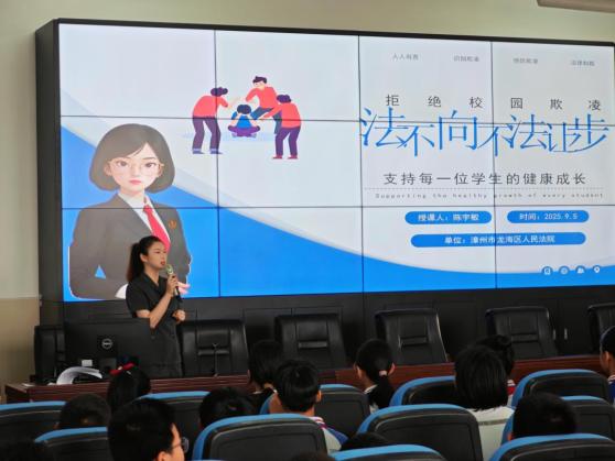 金秋九月开学季,法治教育不缺席。9月5日,龙海法院海澄法庭法官走进月港中心小学,以“法治课堂+座谈交流”的形式,围绕拒绝校园欺凌、家庭教育指导和校园著作权保护等内容,为师生们量身定制一场精彩实用的法治讲堂。