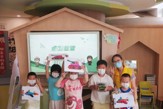 同时开设的“戎耀课堂”,孩子们在互动游戏中了解国家安全形势,学习国防科普知识,模拟战场救护,体验迷彩装扮,手绘武器装备,在寓教于乐中培塑崇军拥军情怀。