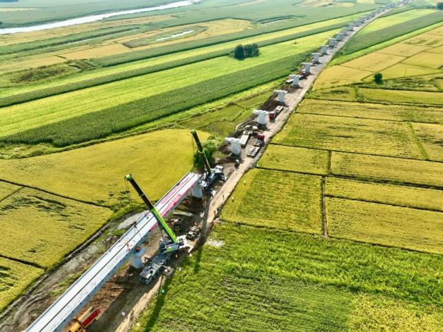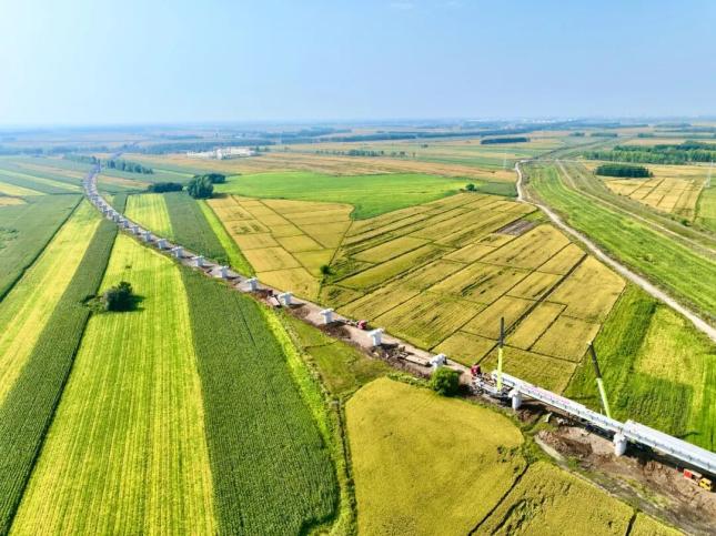 铁五院针对该地区广泛分布的季节性冻土特点,对桥梁结构进行了优化,显著提升其耐久性与经济性。同时,为节约三江平原宝贵的黑土地资源,并为同江市预留城市发展空间,在勘察设计阶段经详细经济技术比选,最终确定“绕避城区+以桥代路”方案。该段桥梁比例高达84%,极大减少土地占用,最大限度降低对三江平原生态环境的干扰。