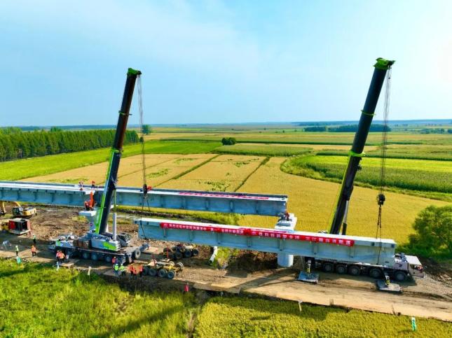 9月5日,由铁五院设计、中铁二十三局承建的我国中欧班列“东通道”重要组成部分——佳木斯至同江铁路扩能改造工程同江特大桥进入架梁施工阶段。桥梁全长10435.14米,是我国中欧班列三大通道口岸段中最长的新建桥梁,为全线“头号控制性工程”。
