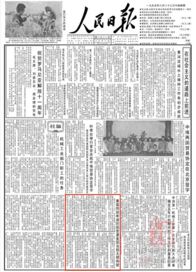 “黄葆同因申请回国曾遭美国当局无理拘禁”,1955年8月23日,《人民日报》头版的这一标题让高分子化学家黄葆同的名字走入国人视野。