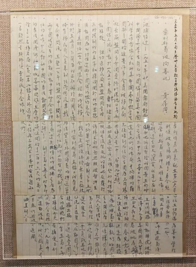1951年,黄葆同办理回国手续时,美国当局以“居留证过期”为借口将他拘捕,这是他亲笔写下的相关经过