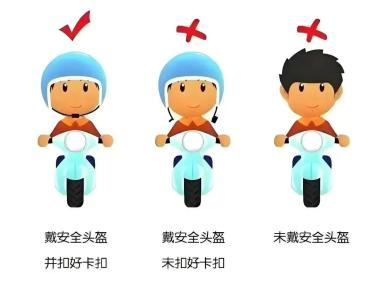 一、从我做起,养成佩戴头盔的良好习惯。每一位骑行者在骑乘电动车(包括共享单车)时,请务必正确佩戴符合标准的安全头盔。拒绝带而不戴,将“戴盔骑行”作为一种自觉行为习惯。驾驶、乘坐电动自行车、摩托车均要正确佩戴安全头盔;头盔是骑行者的最后一道防线,能在最危险的时刻救人一命。安全头盔可吸收大部分撞击力,起到缓冲、减震的保护作用,减轻80%以上的头部伤害。
