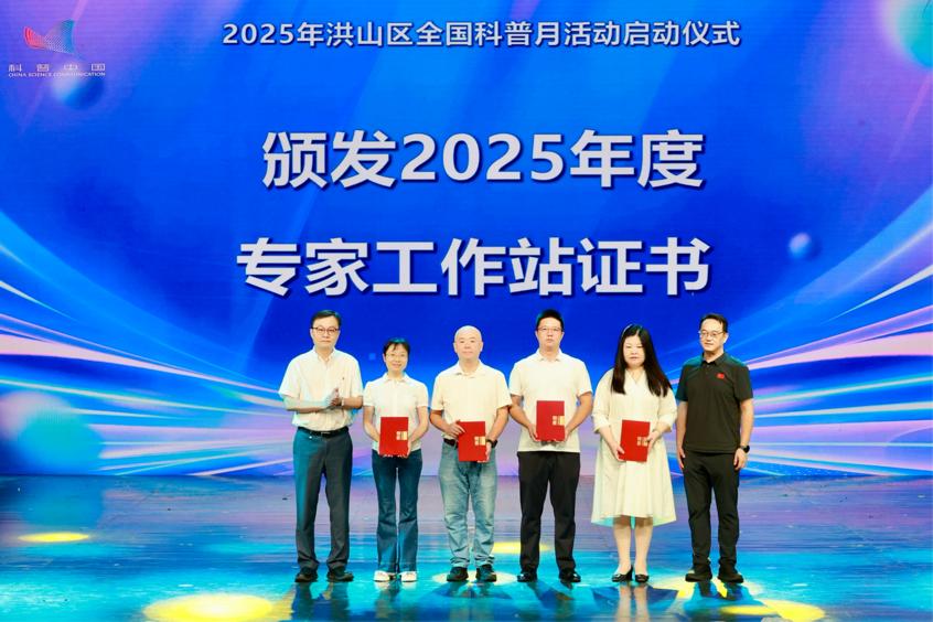 仪式现场亮点纷呈,科学与艺术、创新与传承精彩交融。武汉工商学院学子演绎的科普舞蹈《净美》,以李圭白院士事迹为蓝本,用优美舞姿诠释科学家的家国情怀与科学精神,赢得全场掌声。市科协党组成员、副主席张若光,洪山区政府党组成员、副区长袁永康为武汉科林化工等4家新获批的市级专家工作站颁奖,鼓励企业以平台为依托,加速科技成果转化;来自洪山各科普场馆的讲解员带来“联播秀”,通过生动讲解带领观众“云游”科普基地,感受科学的奇妙魅力。洪山区第五小学学生表演的《太空,你好》舞蹈,则以童真视角展现青少年对宇宙探索的向往,传递“科学未来在少年”的信念。