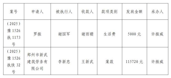 为严格执行案款发放,规范执行案款发放程序,确保案款发放安全,落实人民法院向案外人发放案款公示要求,根据《最高人民法院关于执行款物管理工作的规定》的规定,现对以下执行案款发放事宜予以公示: