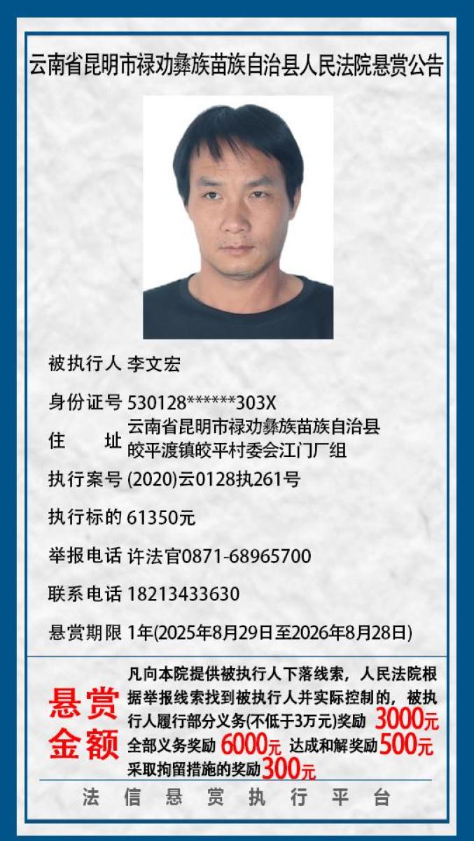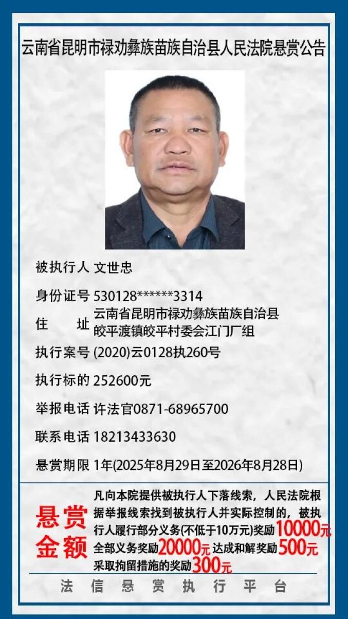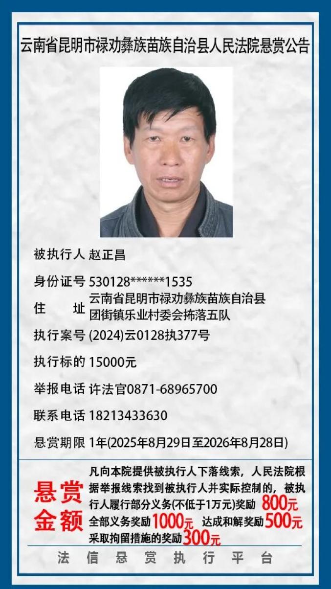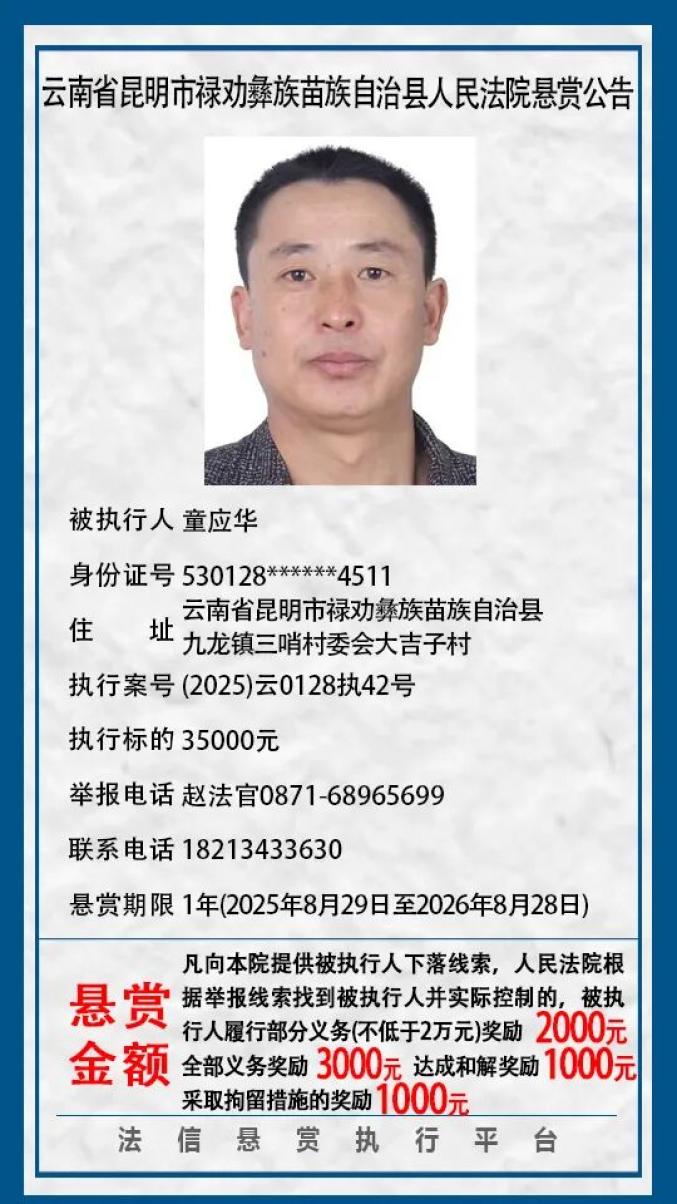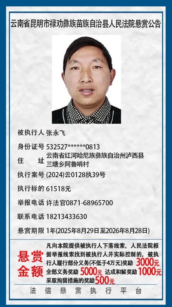 原标题:《【悬赏公告】举报有奖!禄劝法院执行悬赏公告,快来提供有效线索→(2025年第13期)》