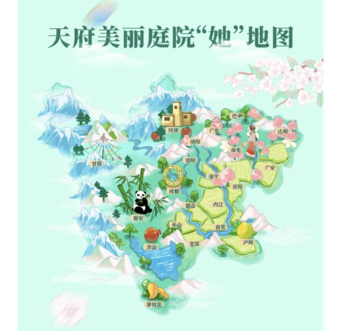 为深入推进乡村振兴战略巾帼行动,助力宜居宜业和美乡村建设,推动农文旅深度融合,促进妇女就业增收,四川省妇联开发制作了天府美丽庭院“她”地图。该地图整合全省妇女居家灵活就业基地、巾帼现代农业科技示范基地、非遗工坊等优质资源,首批汇集全省近400个乡村特色美丽庭院,通过数字化赋能新模式,打造吃住游购娱多元素的沉浸式消费体验新场景,覆盖巾帼工坊、妈妈味道、亲子时光、巾帼好品、巾帼雅居、巾帼耕韵六大主题,集中展示了广大妇女在乡村振兴巾帼行动中的创业创新创美成果。
