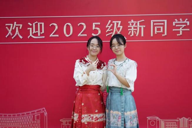 身着马面裙前来报到的练恩宝、练恩贝是一对双胞胎姐妹,将分别入读电力学院电气类专业和自动化科学与工程学院的工科试验班(AI与低空技术)。说到为什么选择华南理工,姐妹两人同时表示,华南理工大学具有强劲的理工科优势,历史文化底蕴深厚,与她们的爱好和发展目标相契合。她们也希望,在华园求学期间,能认识到更多优秀的同学和朋友,不断丰富自己的社会实践经历,拓展视野。