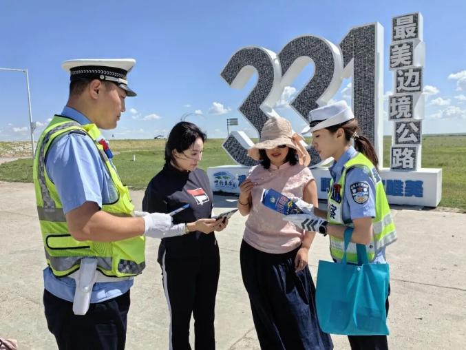 把“安全课”开到每一个角落,让安全提示深入人心。高速口、服务区、景区门口、酒店大堂,甚至飞机场、火车站,随处可见民警发放《暑期安全折页》,面对面提醒游客“系好安全带”“杜绝酒驾”,把风险预警做在前面。同时,联动运营商开展“精准短信推送”,8月中旬至今,仅海拉尔入城口区域就向外地手机号发送10.8万条短信,贴心告知本地路况与安全常识。