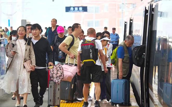 “我上午参观了沈阳故宫,下午到丹东看鸭绿江断桥,晚上直接入住五龙背温泉小镇。坐着高铁旅游,效率非常高!”旅客周女士分享道。