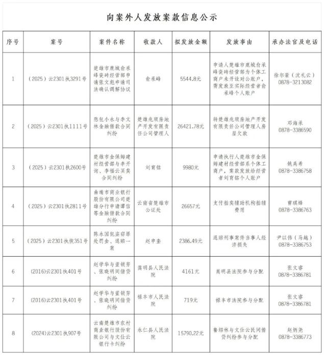 原标题:《云南省楚雄市人民法院关于向案外人发放执行案款的公示(第十二期)》