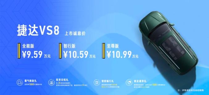 9月5日晚,捷达品牌首款旗舰SUV捷达VS8在成都上市发布。新车型共推出三个“诚意满满”的版本——全能版95900元、智行版105900元、至尊版109900元。同时搭配上市四重权益——霸气焕新礼、驭享无忧礼、智联畅行礼与挚友同享礼,为消费者带来多重实惠。