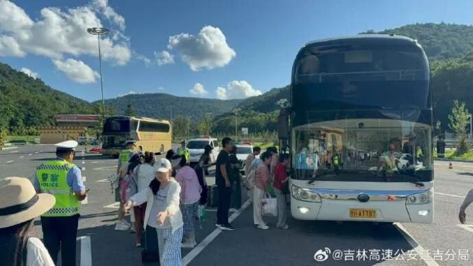 不久后,转运大客车准时抵达服务区。民警立即组织游客有序登车,逐一提醒“请大家带好随身物品,上车后务必系好安全带”。在民警的引导下,57名游客顺利登上转运车辆,继续他们的延吉之旅。临别时,游客们纷纷向民警表示感谢。