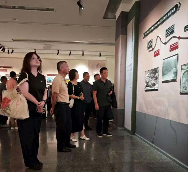 在讲解员引导下,参加活动的同志认真聆听、仔细端详,不时驻足沉思、交流感悟,那一张张泛黄的历史图片、一件件斑驳的实物文物,复原了那条浸润着无数英雄儿女鲜血的“生命线”,体现了中国人民“地无分南北、人无分老幼”的团结协作意识和“自带干粮、风餐露宿、日夜施工”的刻苦耐劳精神,重现了“誓与山河共存亡”的坚定决心和“愿拼热血卫吾华”的不屈意志。